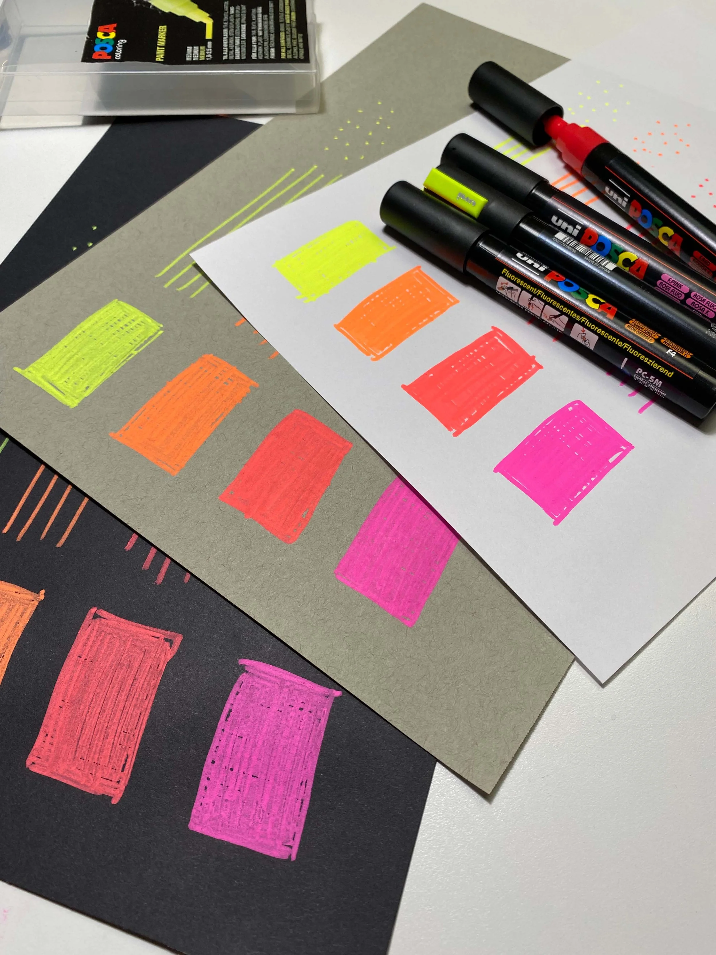 POSCA paint markers: I chose the neon set (PC-5M), which includes yellow, orange, red, and pink. These markers are fantastic for their vibrant opacity and smooth application.